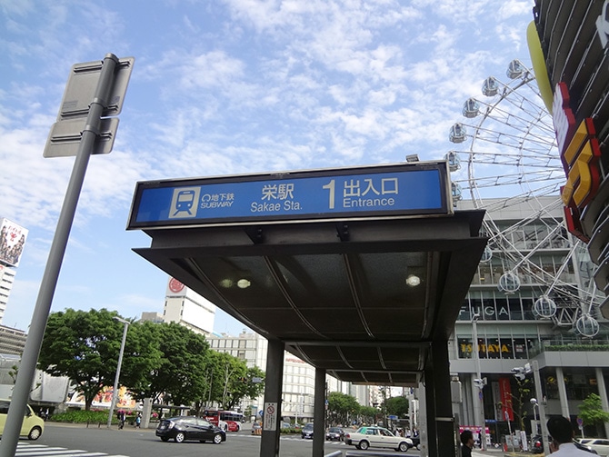 地下鉄東山線『栄駅』下車、1番出口を出ます。